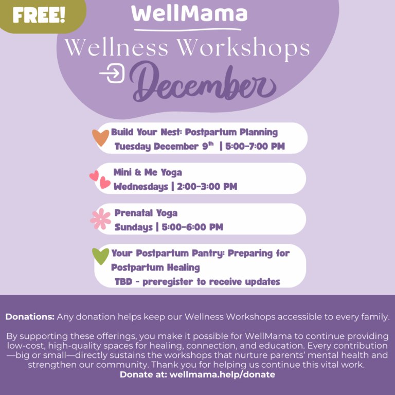 This wellness workshop is all about perinatal nutrition and its relation to perinatal mental health. Come learn the latest evidence-based recommendations plus practical tips regarding how our food, especially during pregnancy, can shape mental wellness during postpartum and beyond. Led by Midwife and Nutrition Therapist Colleen Forbes: www.homemidwiferycare.com/nutrition